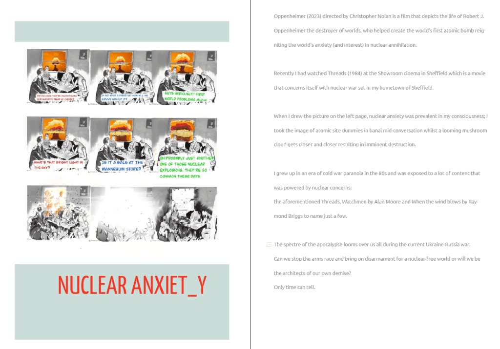 I was inspired by the immortal line of “Libraries gave us power” from 1996’s ‘Design For Life’ adapted from a 1984-esque stone engraving in Newport library (“Knowledge Is Power”), it also overturned the slogan from the gates of Auschwitz: “arbeit macht frei”, used in the lyrics to ‘The Intense Humming Of Evil’, with stark irony: “then work came and made us free”. Reverberating throughout stadiums and young minds, bedroom-bound in claustrophobic, small towns, the Manics were always about lifting up working class listeners, never beating them down further. Despite my atheistic household, I really connected with religious philosophy, where questioning the existence of God was really a search for meaning. This was brought into further relief reading Albert Camus’ The Rebel, where the gears of pure reason seemed to stall against the banality of cruelty.