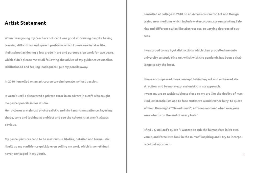 It started with a series of little cuts, lines in serial, to test the flesh and prove a point: you can take it, there is meaning in willing yourself to overcome pain. You wonder out of the front door, leaving the party behind, closing it behind you, pulling back on the handle with one arm, to be undisturbed, to be left alone. in the other hand you hold onto a serrated kitchen knife after a few moments of indecision: the wrist; torso; mental hesitation marks, you carve a star five ways into your left shoulder, it’s mostly skin, it bleeds a lot, you place the knife onto the ground and go to the toilet to find a bundle of tissue,hoping it won’t soak through. You wear a T-shirt all summer, refusing to take it off even when the sun is at its highest, changing plasters every few days. It leaves a mark. People still ask you about it, you don’t know what to say, it was a long time ago, it all happened to someone else.
