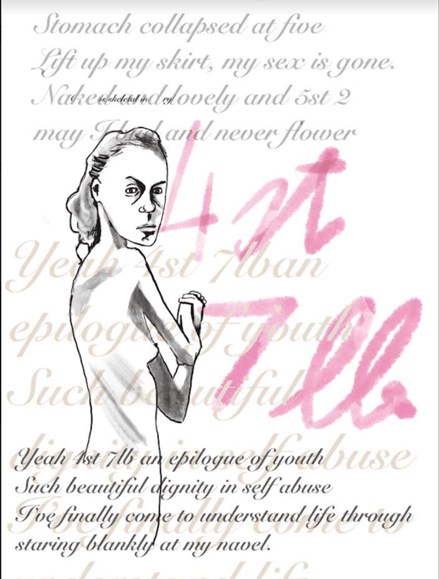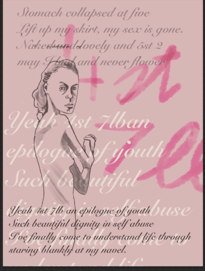 I decided to draw my image of an emaciated female with lyrics from the song to kind of get the ball rolling.