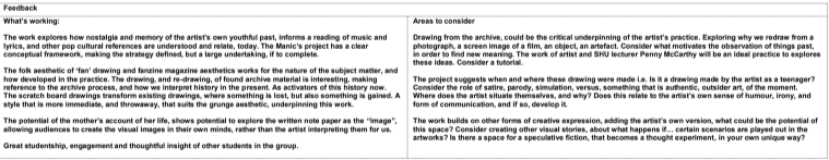 For my presentation I will display my triptych of scraperboard inspired by the Manic Street Preachers The Holy Bible album.