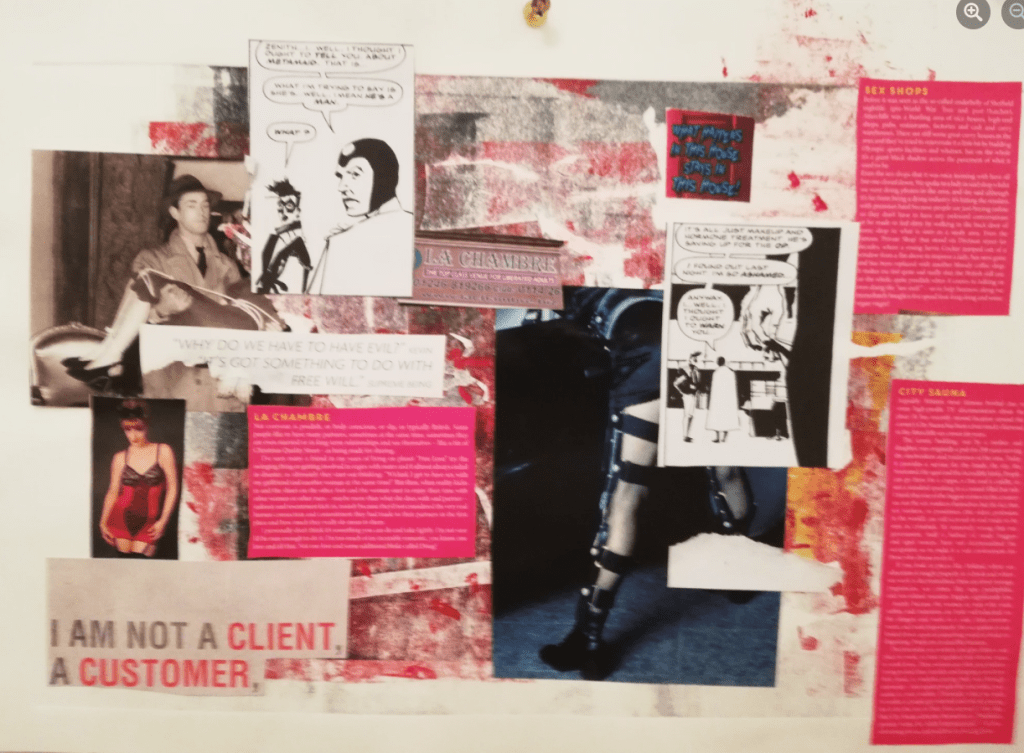 Montage of the sex industry from articles of sex shops in a Sheffield magazine such as La Chambre (swingers club), sex shops and brothels (City Sauna).