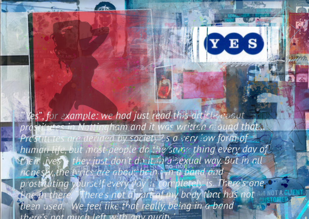 ‘“Yes”, for example: we had just read this article about prostitutes in Nottingham and it was written around that… Prostitutes are derided by society as a very low form of human life, but most people do the same thing every day of their lives – they just don’t do it in a sexual way. But in all honesty, the lyrics are about being in a band and prostituting yourself every day. It completely is. There’s one line in there, “There’s not a part of my body that has not been used.” We feel like that really, being in a band – there’s not much left with any purity.’