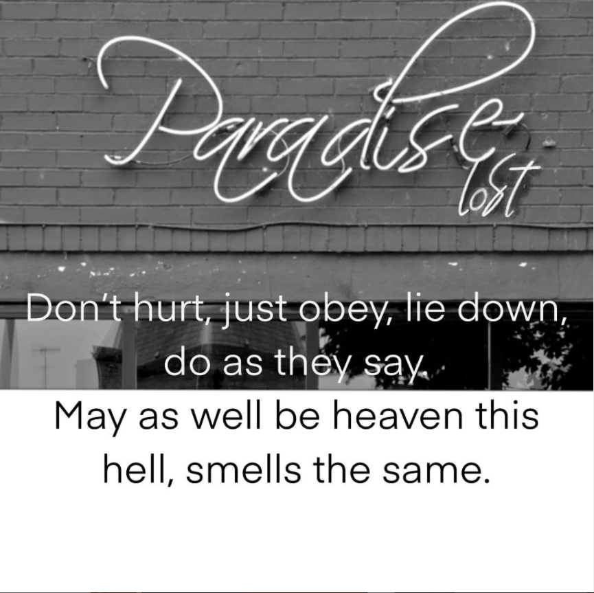 I have added Lost to Paradise which is a reference to Milton’s Paradise Lost which in itself concerns itself with the fall of man.