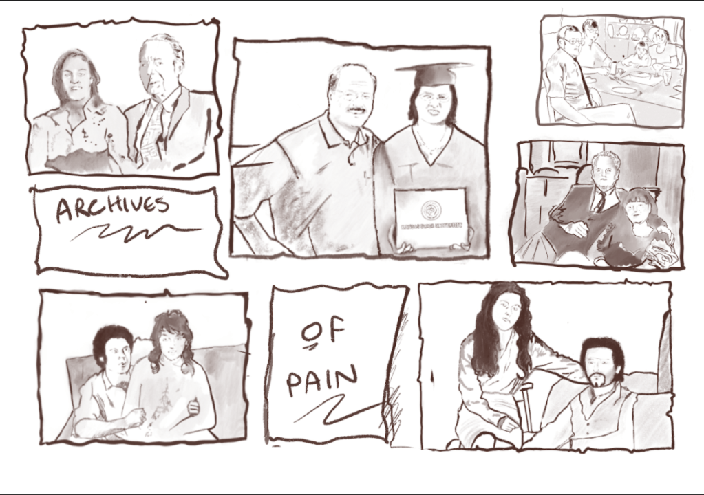 I drew pictures of killers and their family lives posing with wives to illustrate how evil has an everyday face; could be your neighbour, your friend, your husband or wife or even your leaders.
