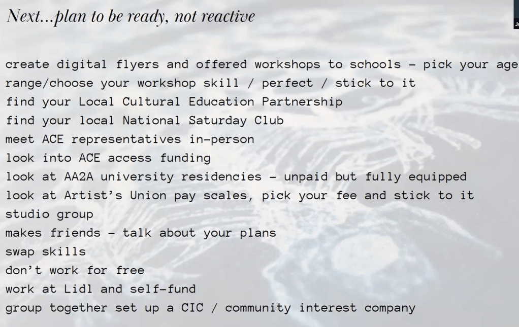 Jo introduces the concept of the presentation’s themes and of how the artist is to thrive and not just survive.