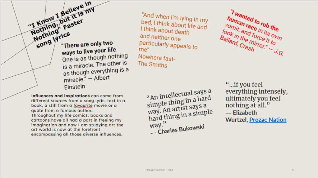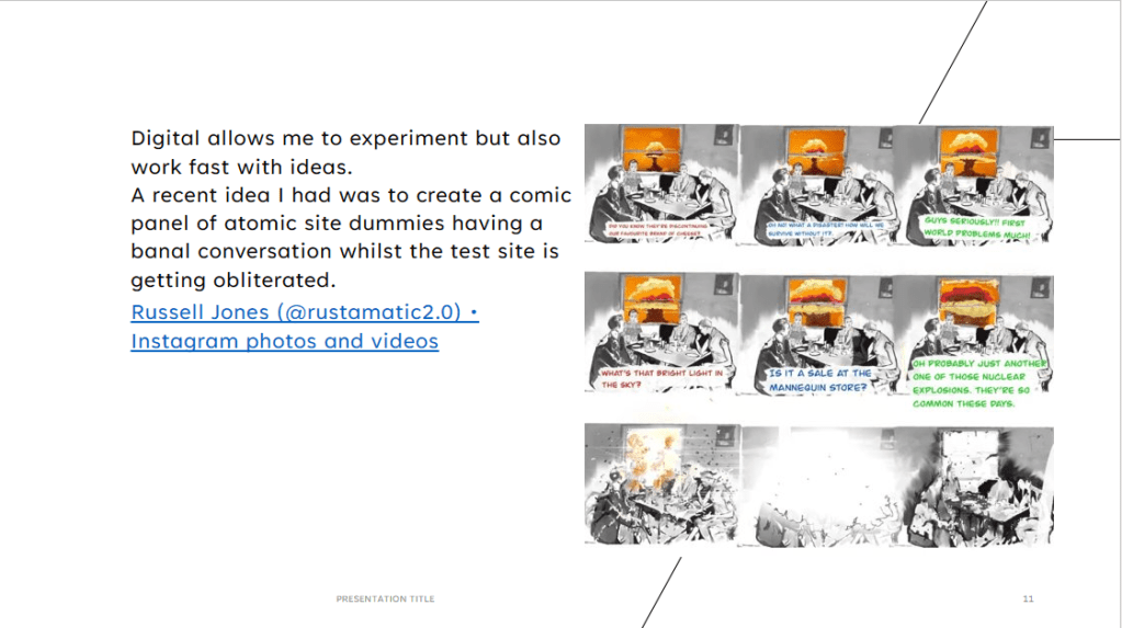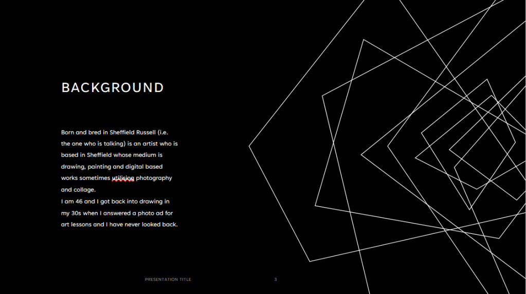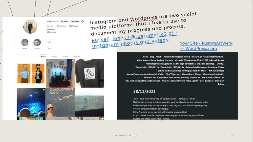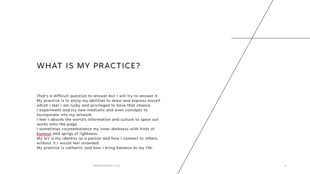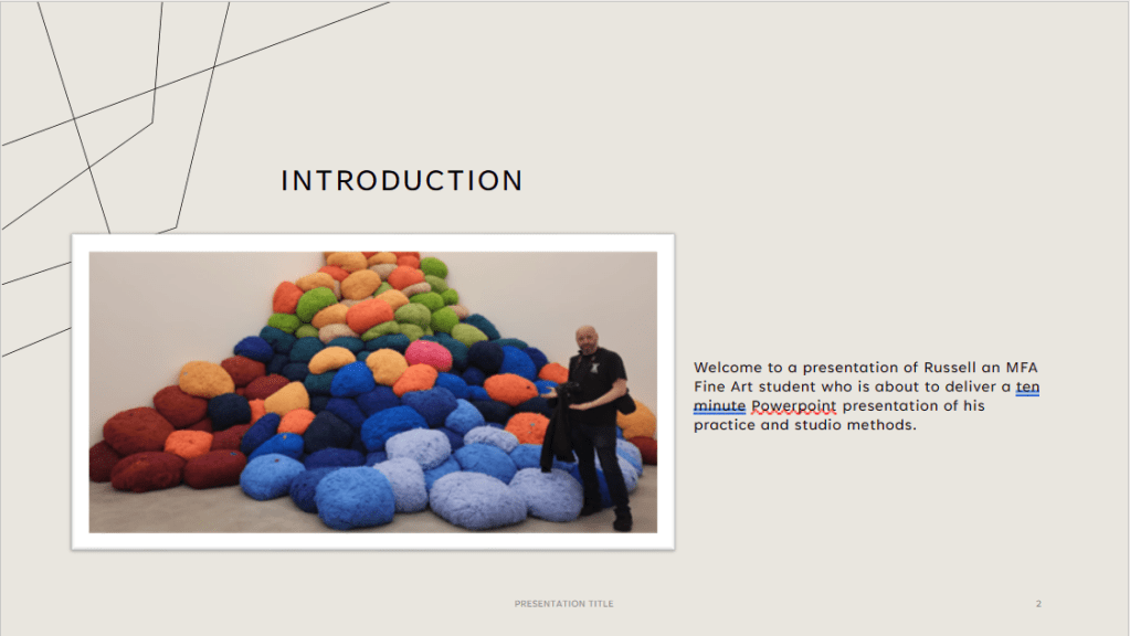 Presentation studio methods 7/12/2023 Posted byRussell JonesDecember 6, 2023December 20, 2023Posted inUncategorized Presentation practice.pptx Share this: Click to share on X (Opens in new window) X Click to share on Facebook (Opens in new window) Facebook Like Loading... Related Published by Russell Jones B A Fine Arts graduate in Sheffield. View more posts