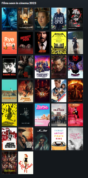 Films seen this year at the cinema 2023 Posted byRussell JonesDecember 20, 2023Posted inUncategorized https://letterboxd.com/rustyjudas/list/films-seen-in-cinema-2023/ Share this: Click to share on X (Opens in new window) X Click to share on Facebook (Opens in new window) Facebook Like Loading... Related Published by Russell Jones B A Fine Arts graduate in Sheffield. View more posts