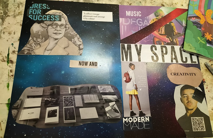 Students (aged 13 & 14) from Castleford Academy collaborated with Leeds based spoken word artist/writer Simone Yasmin and art therapist Will Jones to create an exhibition and zine. The group used collage, song lyrics, drawing, BSL sign language and more to express how they feel about the issues that matter to them. View the zine here