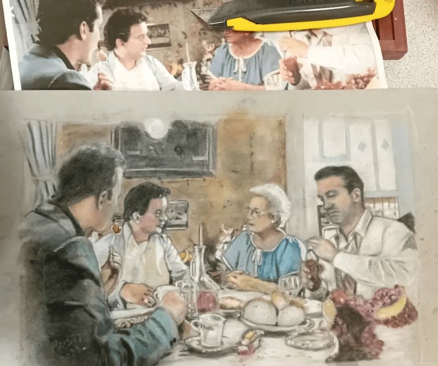 I am currently working in progress on a Goodfellas picture of the gangsters having an impromptu meal with one of their mothers unaware of the body in the boot.