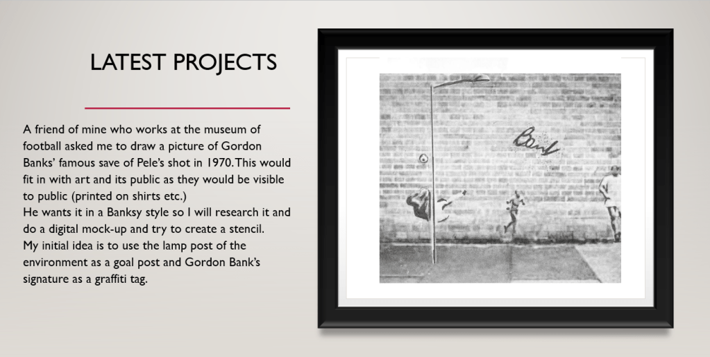 I used my boxing gear to create an installation and my oil painting and pastel picture as the examples of art.