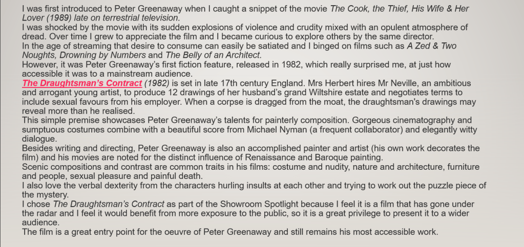 I even asked a question about the inspiration for Dandy Star which is the film about a blind girl who is terrorised by a mysterious killer.
